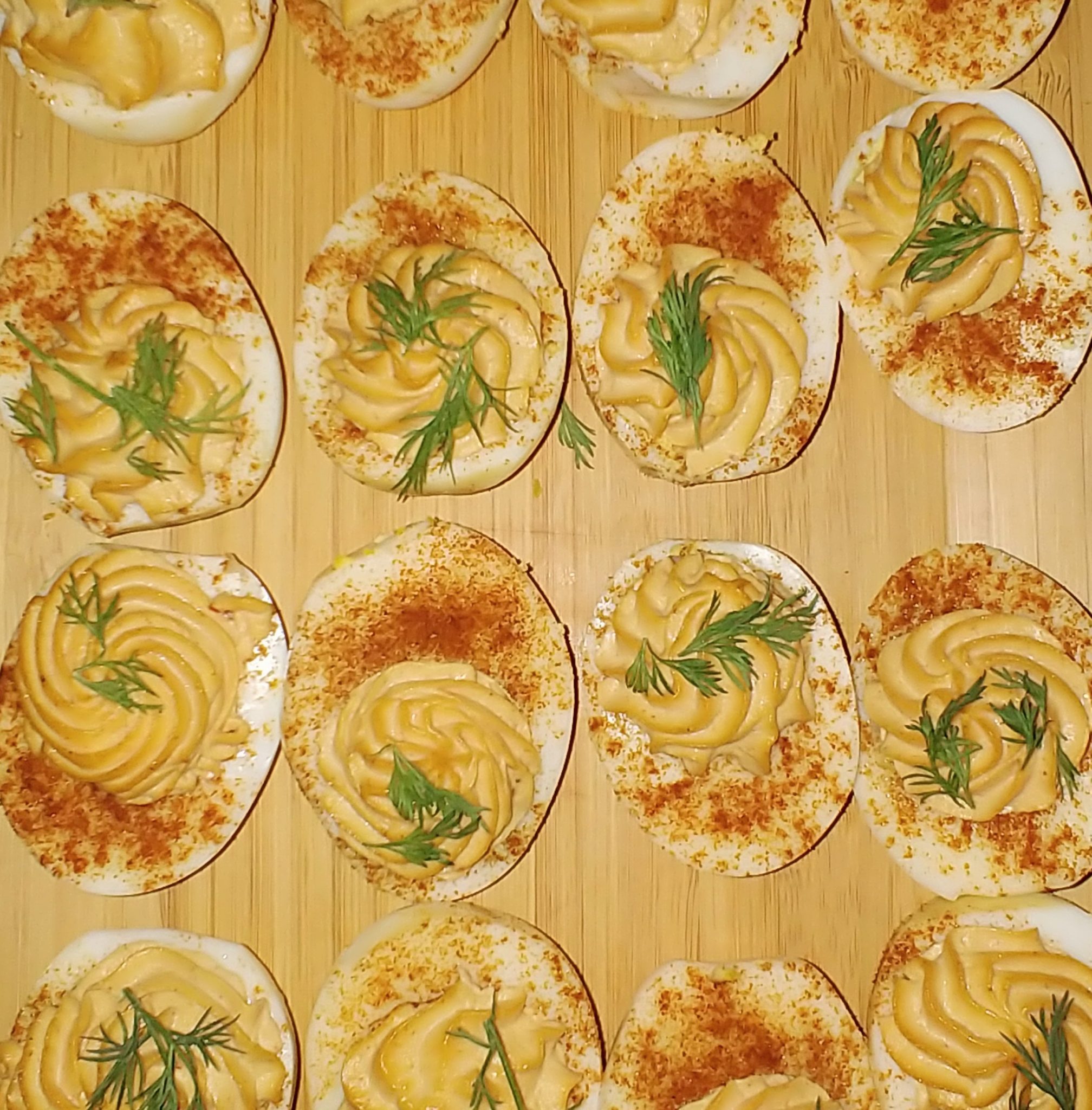 This deviled egg recipe will make you question why you have been making the same ol’ mayo/mustard deviled eggs your entire life! Don’t get me wrong, I love the classics and usually they would be my go-to recipe. Throw some dill on top or a splash of paprika and normally I would be done, but these are just too good not to make. As long as you have or can get your hands on a food processor, this recipe is easy peasy!