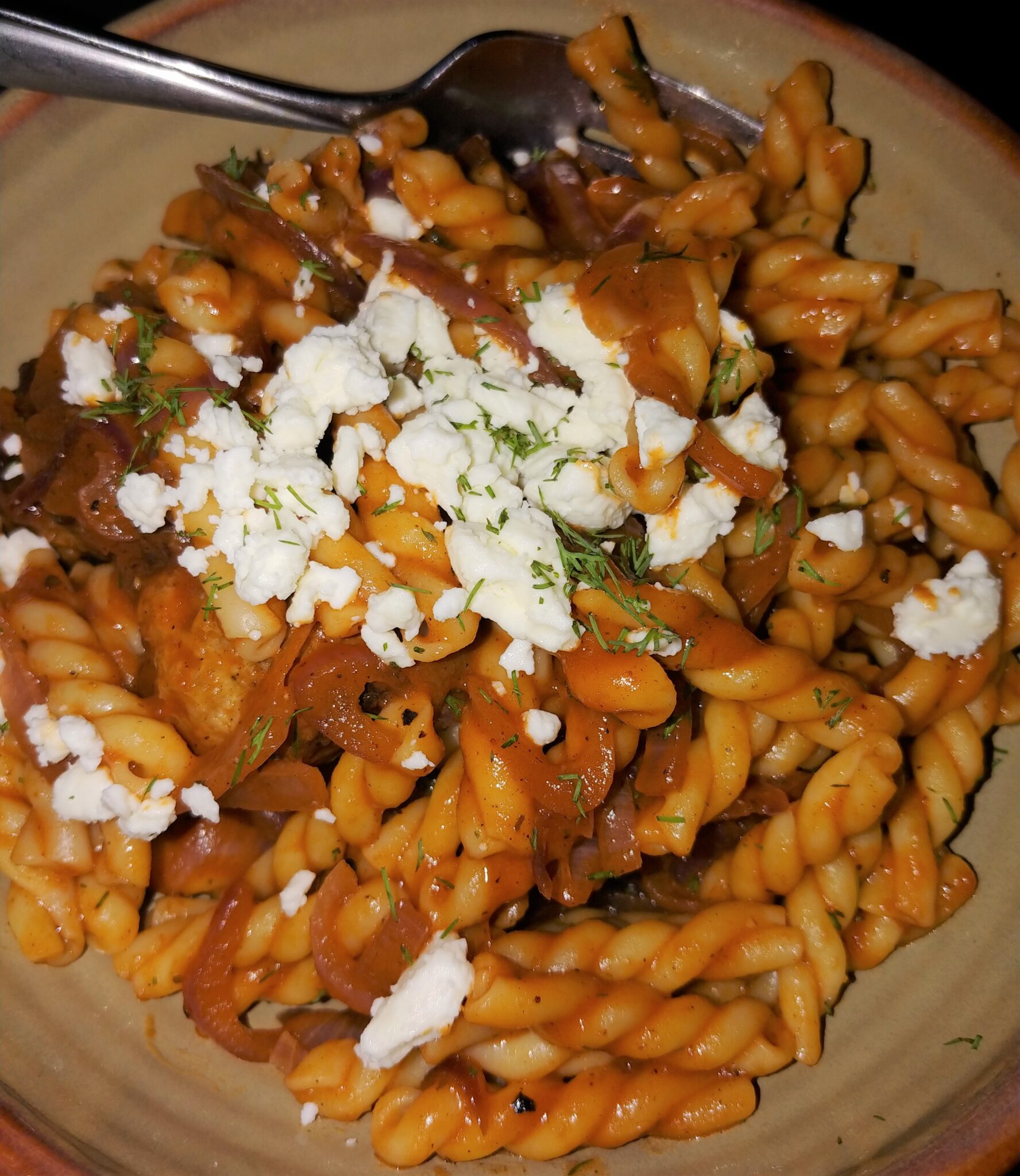 It is almost May and here in Upper Peninsula of Michigan we are experiencing yet another snow storm. Which makes my headspace not quite ready for the Summer season yet and still in comfort food mode. This pasta dish is perfect for that cold night and very versatile (if you aren’t like myself, and obsessed with Feta cheese and fresh dill and happen to have them in your fridge at all times). I have also tried this with substituting the dill and Feta for Parmesan and basil and it worked out amazing.