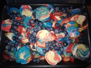 This is no ordinary baked overnight French toast recipe. Instead of using stale French bread, or slices from a loaf, this recipe uses bagels! For Independence Day this year I ordered bagels from “The Bagel Nook” in New Jersey. Normally I would just grab a container of plain white bagels from the store but The Bagel Nook does the cutest seasonal bagels, to which these happened to be red, white and blue tie dye. I love buying fresh ingredients from around the US from Goldbelly as a way to spice things up, and I just had to have these. The fruit I chose when I made this was blueberries and strawberries just to keep with the patriotic vibe, but you can really use any of your favorite fruits that bake well.