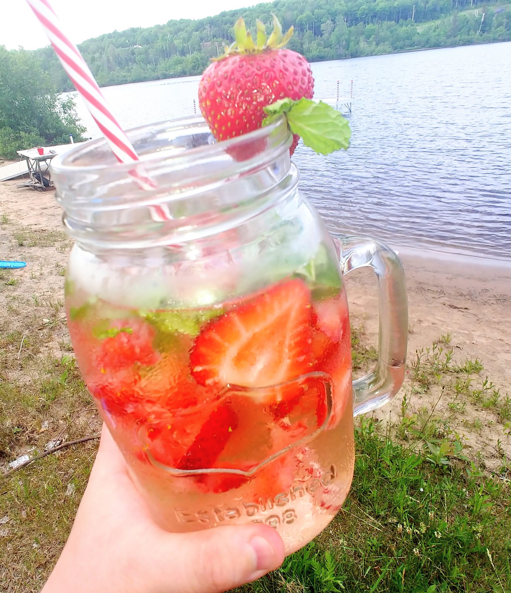When I am out at camp and trying my best to relax, I want to make recipes that are low key and easy to put together. This strawberry mint drink is easy to put together with very little effort. Not only is it unbelievably refreshing but people will be impressed by the complex flavors. They will also have no idea that you only made these with three ingredients. And if you take the time to decorate the side of the cups with a fresh strawberry garnish, they are absolutely perfect for a hot summer day!